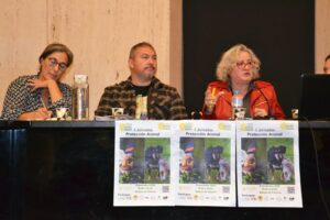 La sesión de la tarde comenzó con la mesa redonda «Extremadura y la protección animal», con Sara Ramiro, de la Asociación Felina de Romangordo, Isabel de la Protectora de Cáceres, Andrés Montero, de la Federación Española de Profesionales del Comportamiento Animal, y María Manglano, de ADANA Badajoz y AVATMA.